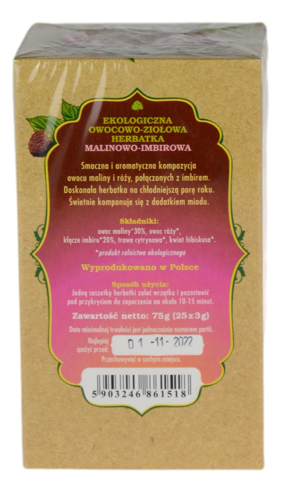 Herbatka malinowo imbirowa EKO 25x3g DARY NATURY