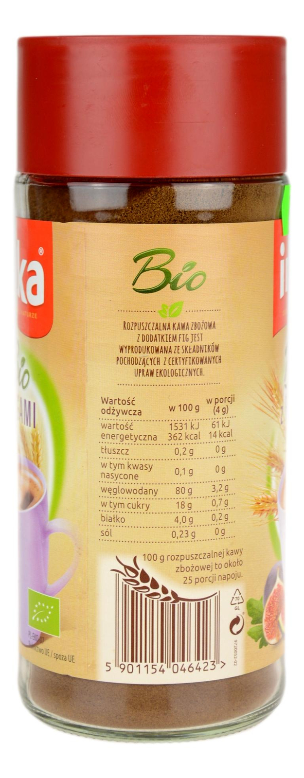 Aromatyczna kawa zbożowa z wyczuwalną figową nutą to pyszne urozmaicenie i alternatywa dla klasycznej kawy zbożowej. Łagodny smak fig to idealne dopełnienie dla naturalnie zbożowego charakteru tego wariantu Inki Bio. Ekologiczne, potwierdzone certyfikatami pochodzenie składników to gwarancja naturalności, najlepszego smaku i zadowolenia.