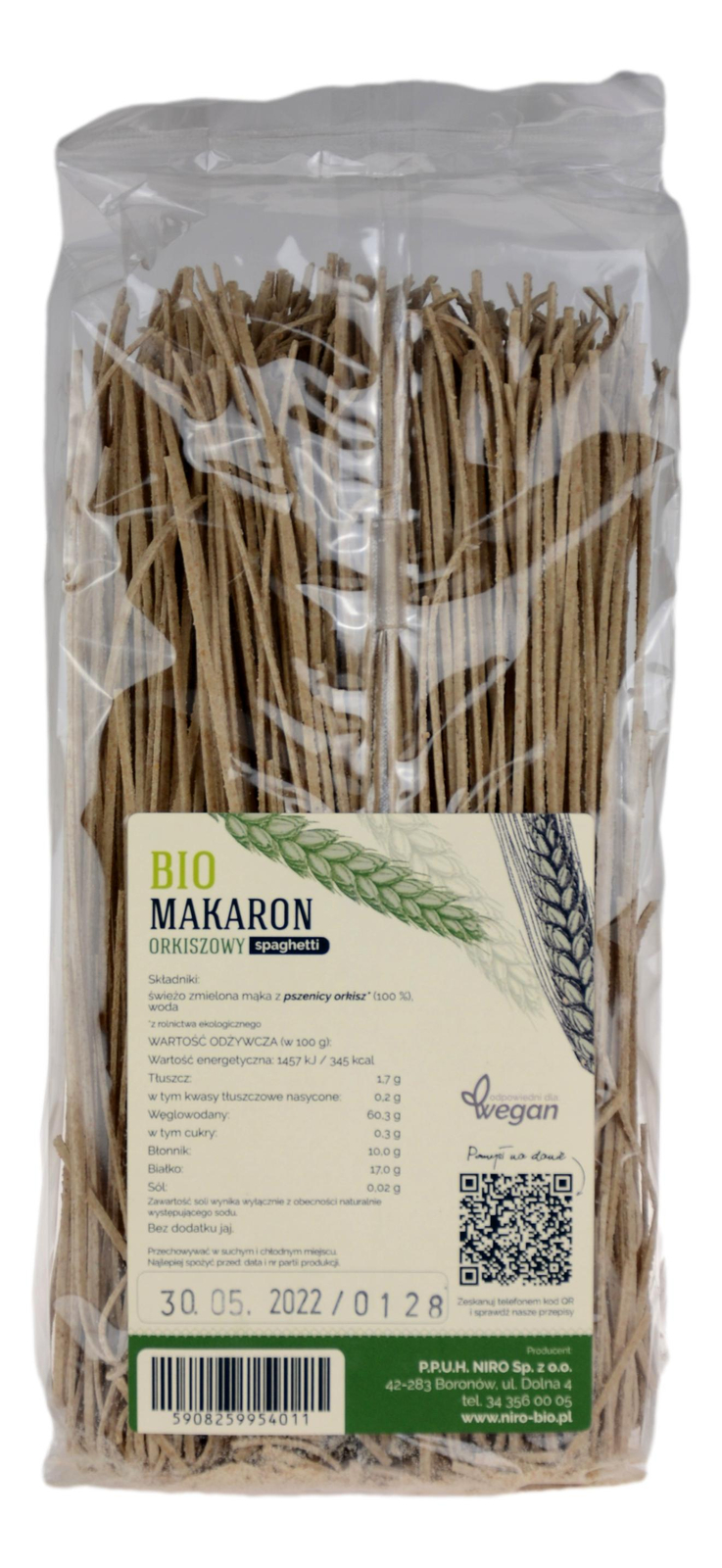 Makaron orkiszowy pełnoziarnisty spaghetti BIO 400g NIRO