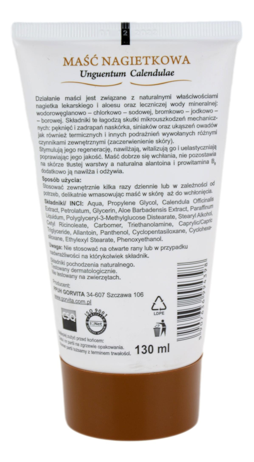 Działanie maści jest związane z naturalnymi właściwościami nagietka lekarskiego i aloesu oraz leczniczej wody mineralnej: wodorowęglanowo- chlorkowo- sodowej, bromkowo – jodkowo- borowej. Składniki te łagodzą skutki mikrouszkodzeń mechanicznych: pęknięć i zadrapań naskórka, siniaków oraz ukąszeń owadów jak również termicznych i innych podrażnień wywołanych różnymi czynnikami zewnętrznymi (zaczerwienienie skóry). Stymulują jego regenerację, poprawiają nawilżenie, witalizują go i uelastyczniają poprawiając jego jakość. Maść dobrze się wchłania, nie pozostawia na skórze tłustej warstwy a naturalna alantoina i prowitamina B6 dodatkowo ją nawilża i odżywia.