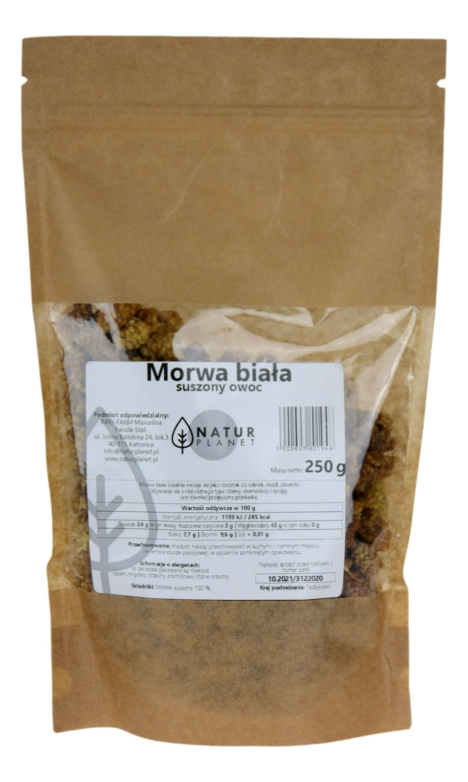 Owoce morwy białej są bogatym źródłem wielu prozdrowotnych związków, minerałów i witamin, które są niezbędne dla optymalnego zdrowia. Są doskonałym źródłem żelaza i witaminy C, a także zawierają witaminę B i K, są również dobrym źródłem błonnika pokarmowego, ryboflawiny, fosforu, magnezu, potasu oraz znakomitym źródłem resweratrolu, który jest znany ze swojego silnego właściwości przeciwstarzeniowe.