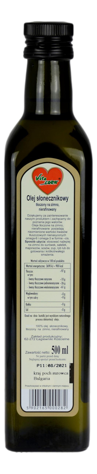 100% olej słonecznikowy, tłoczony na zimno, nierafinowany