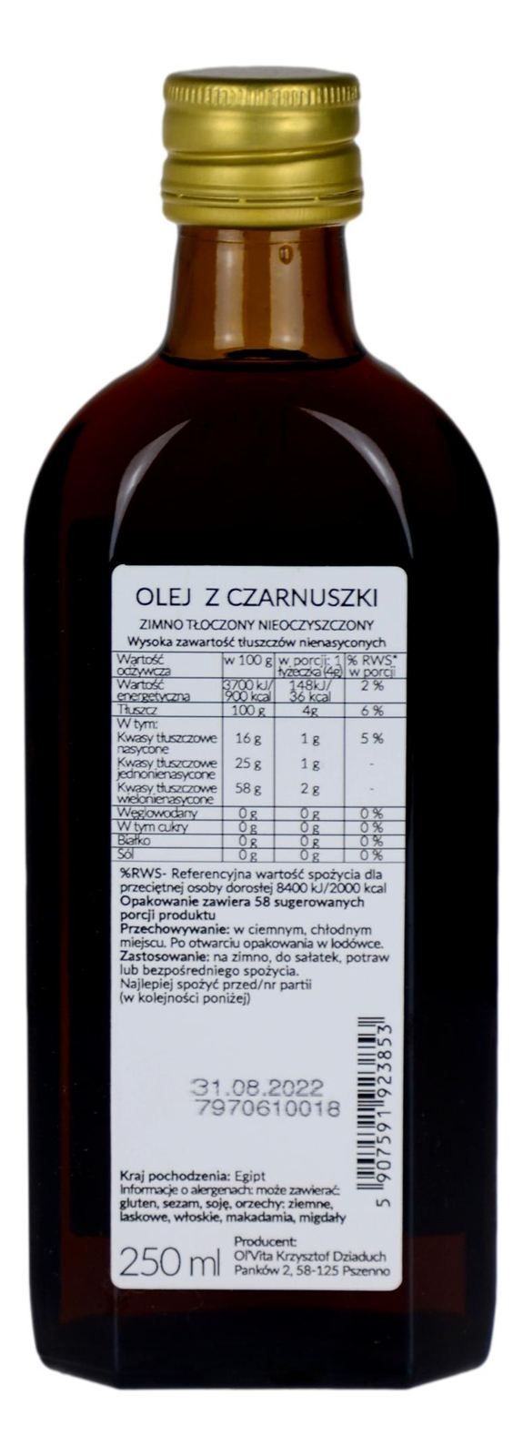 olej nierafinowany z nasion czarnuszki