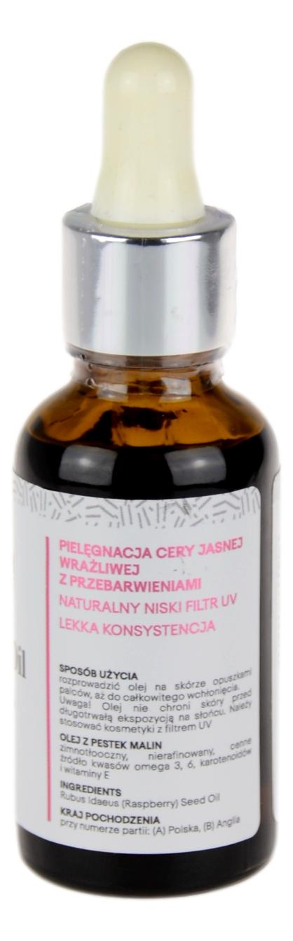 Olej z pestek czerwonych malin oferuje jedno z najwyższych stężeń przeciwutleniaczy i steroli roślinnych. Ten kojący olejek jest doskonałym środkiem nawilżającym i odżywczym dla suchej lub odwodnionej skóry, a jego zawartość przeciwutleniaczy sprawia, że ​​jest szczególnie korzystny w miejscach narażonych na słońce. Olej z pestek Malin 30ml NATUR PLANET to czysty olej z pierwszego tłoczenia, tłoczony na zimno i nierafinowany, który nie zawiera wypełniaczy ani innych dodatków. Wystarczająco delikatny dla twarzy, ten ultranawilżający olejek pomaga zmniejszyć widoczność drobnych linii i zmarszczek oraz nadaje skórze bardziej miękki i jędrniejszy wygląd. Wypróbuj go jako środek do demakijażu lub na włosy, aby dodać miękkości i blasku, ujarzmić puszenie się i nawilżyć skórę głowy. Lub wetrzyj go w paznokcie, aby wyglądały mniej kruche i zmiękczył skórki.
