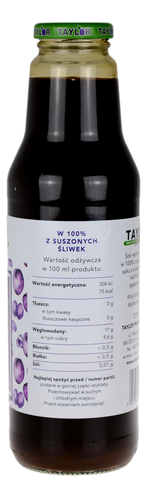 Sok z suszonych śliwek kalifornijskich 100% 750ml TAYLOR