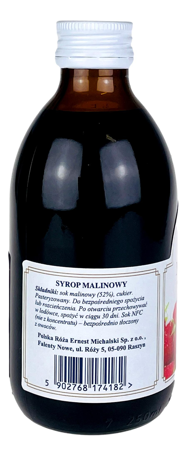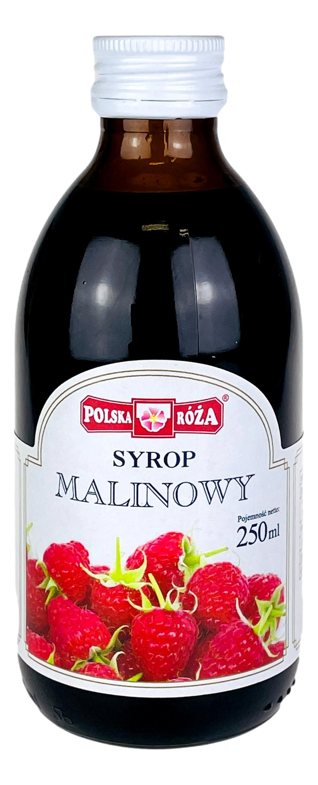 Niskosłodzony syrop malinowy uzyskiwany tradycyjną metodą.