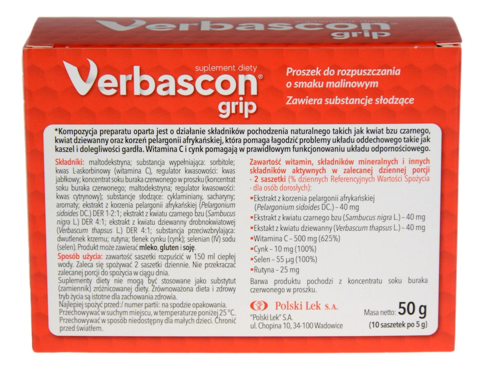 Verbascon Grip - malinowy 10 saszetek POLSKI LEK