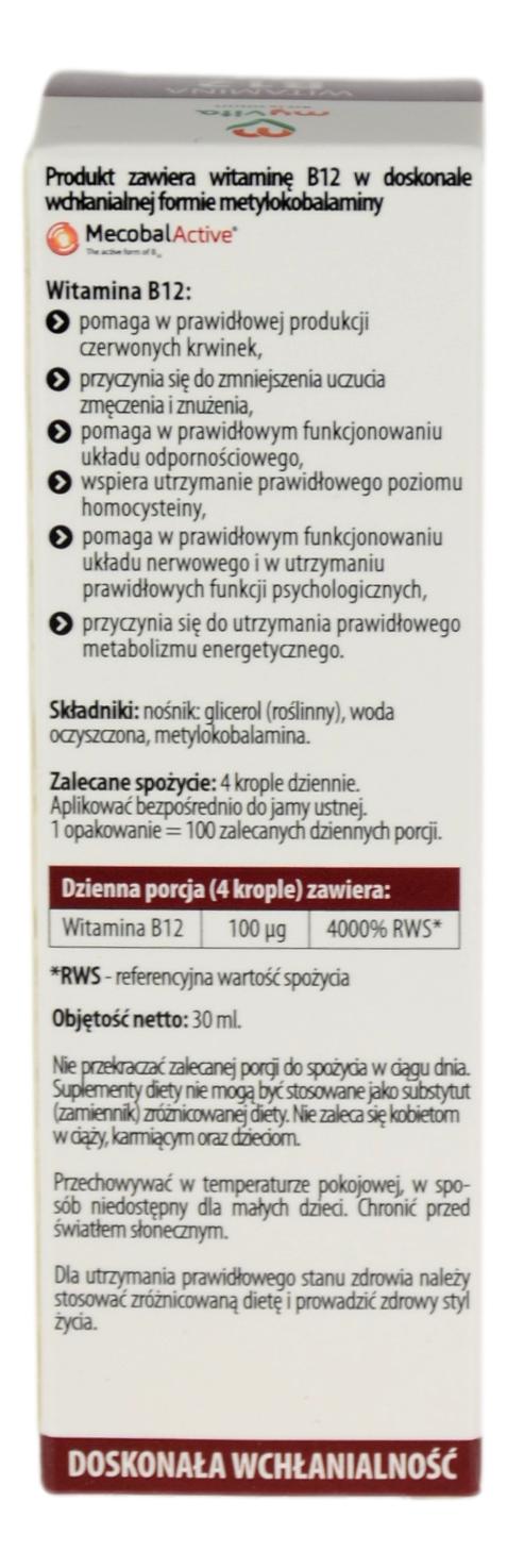 nośnik: glicerol (roslinny), woda oczyszczona, metylokobalamina.