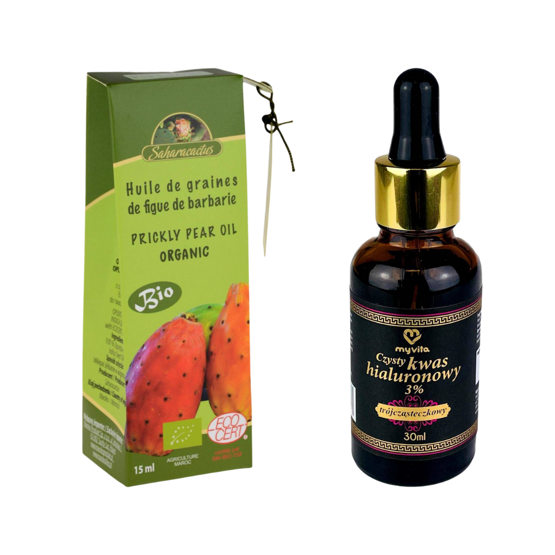 Zestaw na zmarszczki Olej z nasion opuncji figowej 15ml + Kwas hialuronowy 30 ml